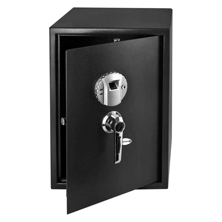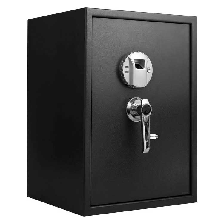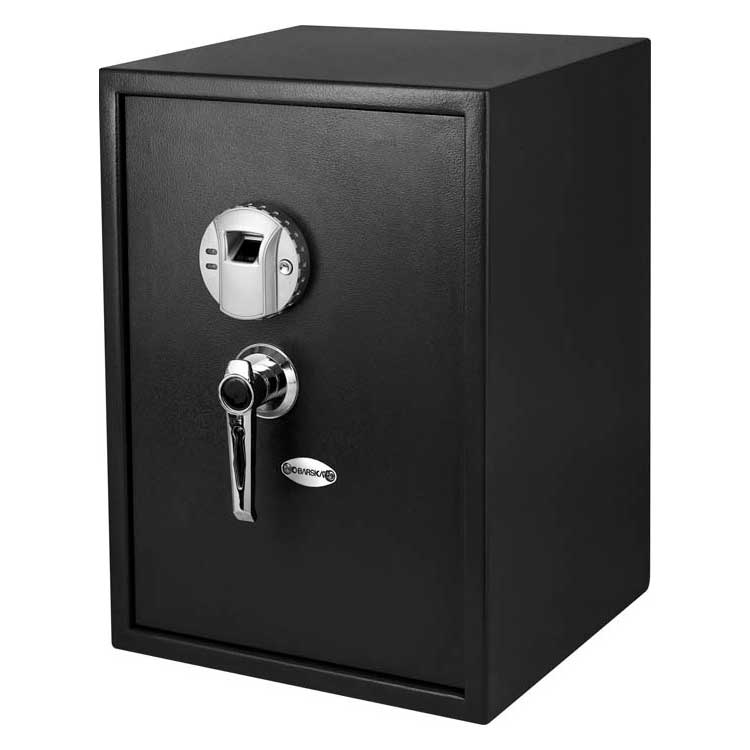 Store large valuable items such as expensive video cameras, laptops, jewelry, passports, documents, cash and more. For you hunters/shooting sports enthusiasts you can now securely store thousands of rounds of ammunition and dozens of handguns. The large biometric safe by Barska features a new manual three point solid dead bolt locking system that can be quickly opened with one hand turn motion. Access to your valuables is as easy pushing the power button, scanning your fingerprint and a quick turn of the handle. This safe’s interior features two adjustable shelves and a protective floor mat.
