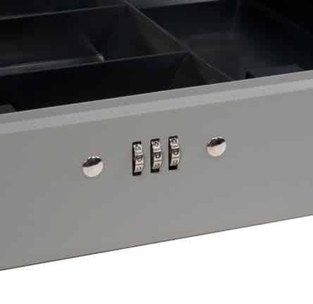 The box provides impeccable portability and storage, thanks to its lightweight nature and fold down recessed carrying handle. It comes with a removable six section coin tray and a removable three section lower tray to conveniently store your valuables.