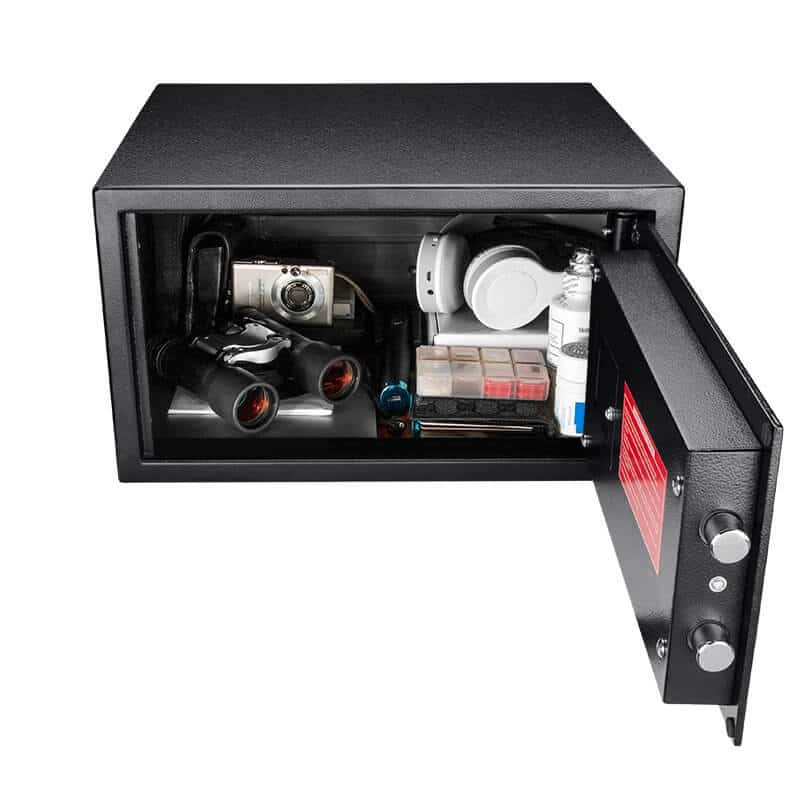 HQ500’s advanced BioSecure technology will only recognize the fingerprints that have been programmed into the safe, and the PIN Code acts as a backup in case the safe needs to be accessed by someone whose fingerprint has not been registered. The .99 cubic foot HQ500 by Barska is the perfect storage solution for small electronics, jewelry, medicines, important documents, and countless other valuables. The HQ500 comes complete with mounting hardware, a set of 2 back-up keys, protective floor mat, and 4 AA batteries.