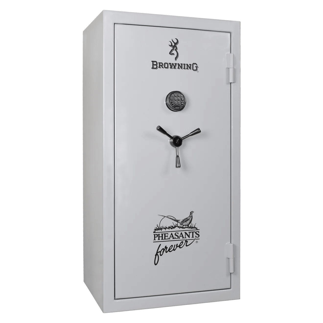 Browning Safes became a preferred partner for gun safes with Pheasants Forever to produce this special Upland edition of our Sporter-33 gun safe. Brandishing upland vest colors on the interior door panel and the Quail Forever logo on the door, this safe is clearly unique. The versatile gun safe delivers impressive security and quality in a cost-effective package. Rely on durable 12-gauge steel, 3-way chrome locking bolts.