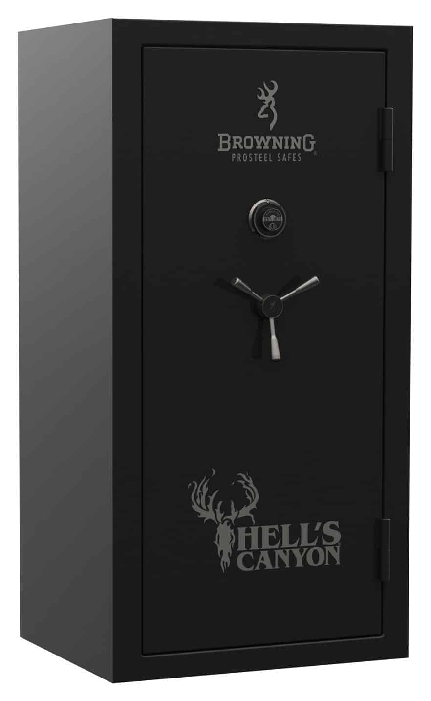 As spacious as its name suggests, the Hell’s Canyon can keep all your valuables safe—locked behind 11-Gauge steel, hardened steel pin lock protection, and Pry-Stop End Bolts. Enjoy American-made craftsmanship, top-of-the-line security technology, adjustable shelving, and for the finishing touch, sleek black chrome hardware.