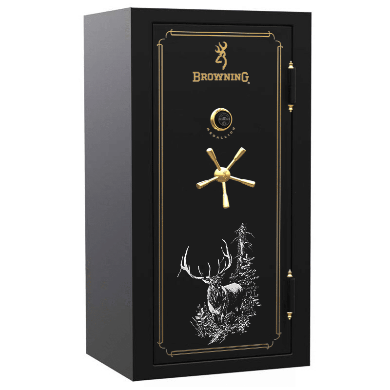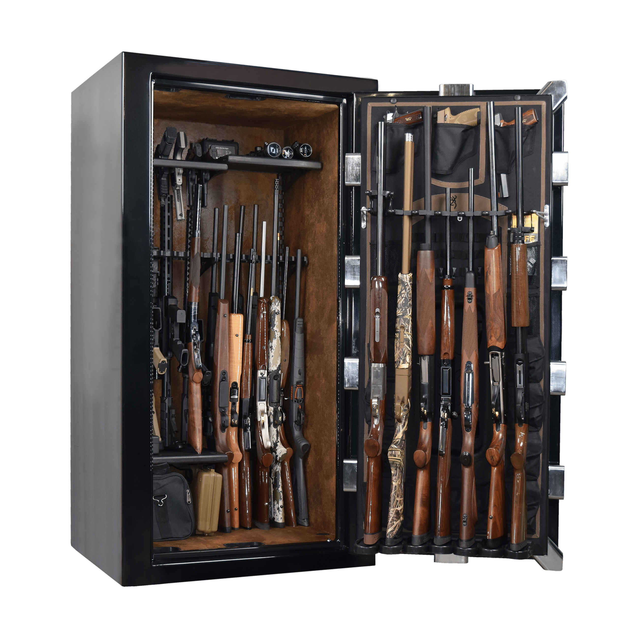 I shopped long and hard for a safe to put all of my Browning's in. Had them under the bed years and after a talk with myself, I realized that is pretty irresponsible. In addition, I rationalized that some of my more expensive Browning's belonged to my Dad and for that reason were irreplaceable, so I started to shop for a gun safe. So many choices out there. Shopped for over a month. Checking this and that. Could not decide. Some were just too far out of my price range, because despite it all, still not made of money. I went down to Costco and looked at the Bighorn, which was imported and had a cheap look and feel to it. I think I talked or chatted with every salesperson there at gunsafes.com and I finally got hold of Marty. I said I had it whittled down to two choices, one by Amsec and another by Liberty. Marty said I should also take a look at the Browning safe. Most of my long guns are Browning and I know the quality there, so I looked at this safe. I kept looking at all of these, including the Bighorn. Did I really want to spend three times the amount for the Bighorn than any of the others and the answer was pretty apparent, you pay for quality on a gun safe. Cutting corners on the manufacturing, means less cost and conversely, more dollars spent equates to a more quality safe. That’s just how it works with these products. All that being stated, I took the advice of many out there, get the biggest safe you can afford and you will spend a bit more for quality, but what is your collection really worth to you? My over and under alone is worth more than the safe, so everything in perspective…Now on to the safe. I chose the Browning. I liked the layout and the DPX system is awesome. Not a bunch of chipboard with carpet on it, but solid shelving that can be moved in several configurations with a rubberized top that protects and keeps anything from slipping you put on it. The door has more pockets than you can really know what to do with, but it seems like you can find a place for all your good Buck knives, spare magazines, whatever can get put into those. As well, there is a place for 9 guns on the door, so you don’t have to move everything around, to reach one of your favorites, it’s right there on the door, just grab one and go. Also, the door has a scope saver feature, which is an embedded pre-molded space for your scoped rifles, I have two in there and now I don’t have to take the scopes off…awesome. Great feature. Door is heavy, high quality and swings easily on ball bearings. The external hinges also mean a greater swing and it comes off if you want to move that safe easier. Another thing I really like is the corner bolts. Eliminates a point of weakness where a thief may start prying on. Electronic lock is awesome. Everyone said they can be a pain, but if you can read the directions, it works exactly as advertised. I got the black painted one, with gold lock, pointer design on the front, gold handles. We peeled the cardboard off of it and the driver who delivered it had just bought a Cannon and after we looked it all over and peeked inside, he said, “Man, I think I may have bought the wrong safe, that Browning is awesome.” The more I have it , the more I have to agree with his assessment. It’s heavy, with 10 gauge metal, continuous welded seams and that gold and gloss black, it’s a really nice contrast. Some of my buddies who have cheaper safes, ribbed me about spending too much, till they came over and saw it…that put an end to any doubts they had. Also wired for 110v inside, so no having to drill your own hole. Bottom line is I think that you can spend less and I know you will end up with a lot less safe and I think you can spend more, quite a bit more before you find the same quality of this safe for a reasonable price. If you are looking for a safe that is pretty enough to be in your living room, quality enough to help you sleep when you are on vacation and reasonably priced. I would definitely consider this Browning safe. I would also not hesitate to spend a couple extra hundred to get exactly what you want, because I can guarantee you that it will outlive you and you might as well get what you want and be happy with that rather than live with something less than you wanted for all the years you will own this safe.