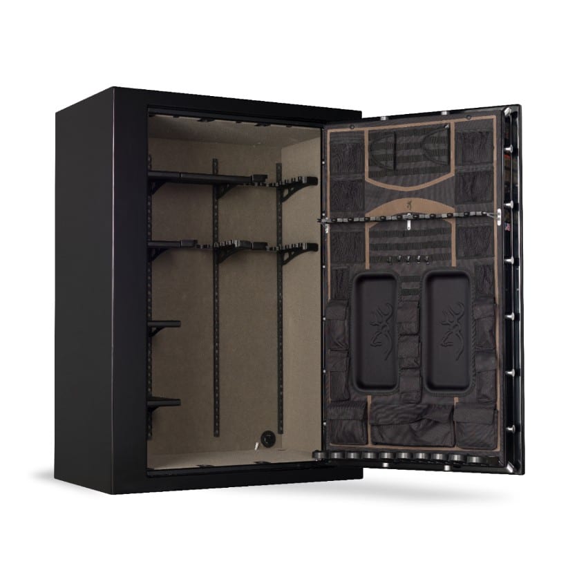 With Browning Safes DPX® Door Storage System, storing long guns on the door gives you two front rows and direct access to 60%-70% of your guns without moving another gun first. Our DPX Scope Savers give you extra room for scoped long guns and Pistol Pouches that keep your handguns secure and easily accessible.