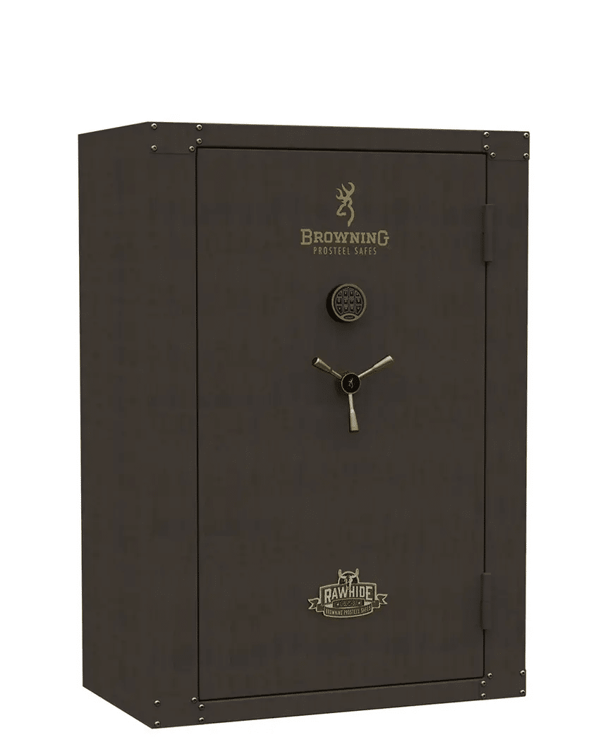The outside of the Browning RW49T Rawhide Wide Gun Safe comes in a