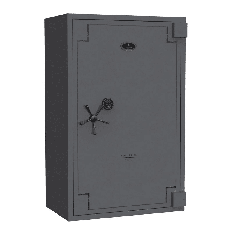 Browning Safes Pro Series TL-30 is designed to provide highest security and fire protection for your firearms with its dual layers of 11-Gauge steel, 2-1/2″ high strength aggregate concrete, and 120 minutes of 1,750° fire resistance. With its 1-1/2″ diameter chrome bolts, four passive re-lockers, two back-mounted re-lockers, and the SG Mechanical or SG top-lit electronic lock, you can have the peace of mind that your valuables are kept safe.