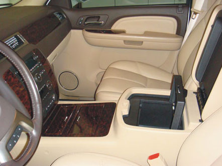 The Chevy Tahoe Floor Console is Console Vault’s flagship product. Taking full advantage of Chevy’s’ model change in 2007 that allowed a much larger console, Console Vault crafted an amazing vault that took full advantage of the ample space now provided.