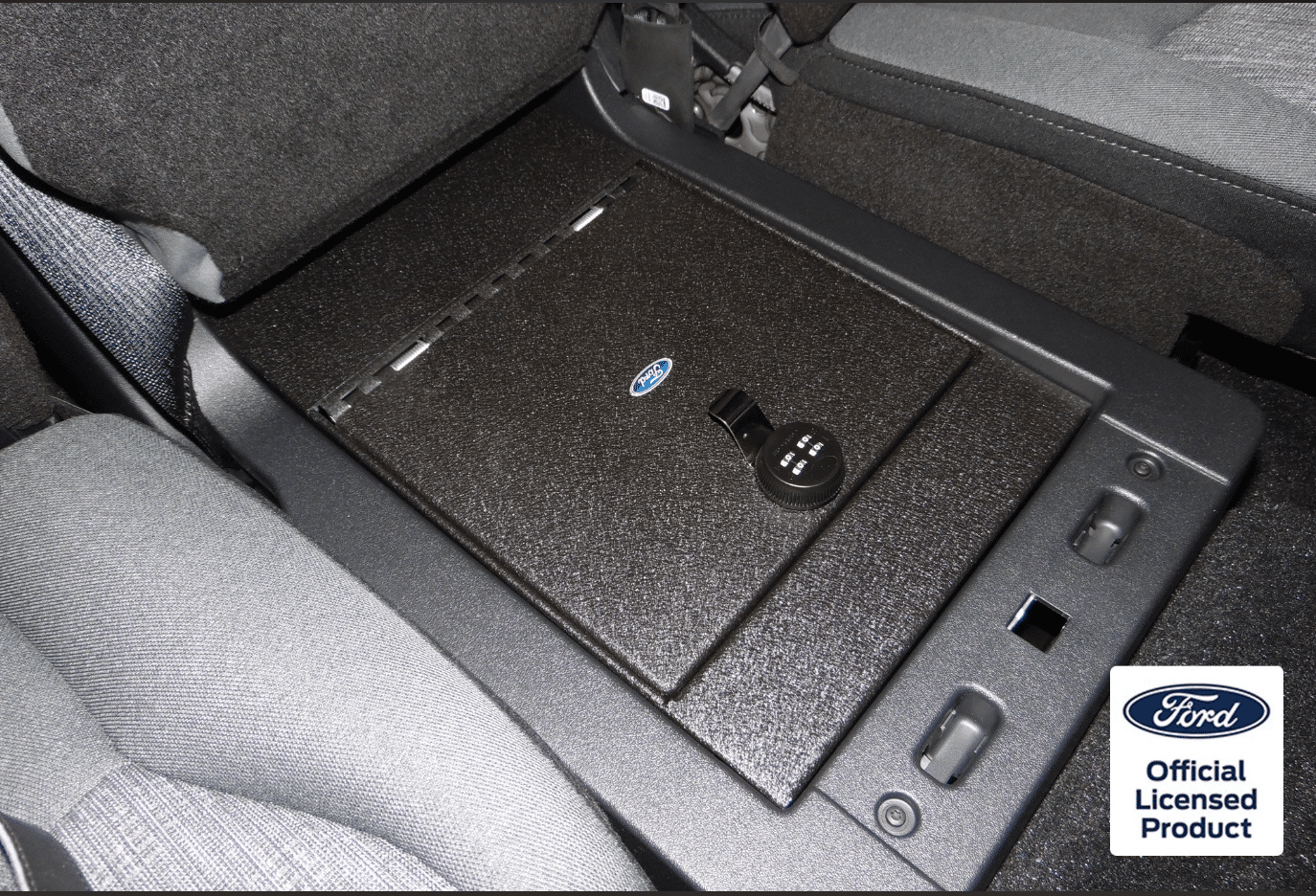 Console Vault® has been designated as a Ford Worldwide Licensing Partner in recognition of our quality, design and craftsmanship. Now more than ever you can be confident that Console Vault’s In-Vehicle Safes are the perfect place to store your most important valuables and firearms. Official Ford Licensed Console Vault In-Vehicle Safes will now be available for a wide range of Ford’s bestselling vehicles including F150, Bronco, Expedition, Explorer, Ranger and Lincoln.