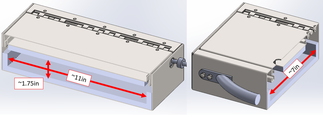 - Interior Dimensions: 11″W x 1.75″H x 7″L
