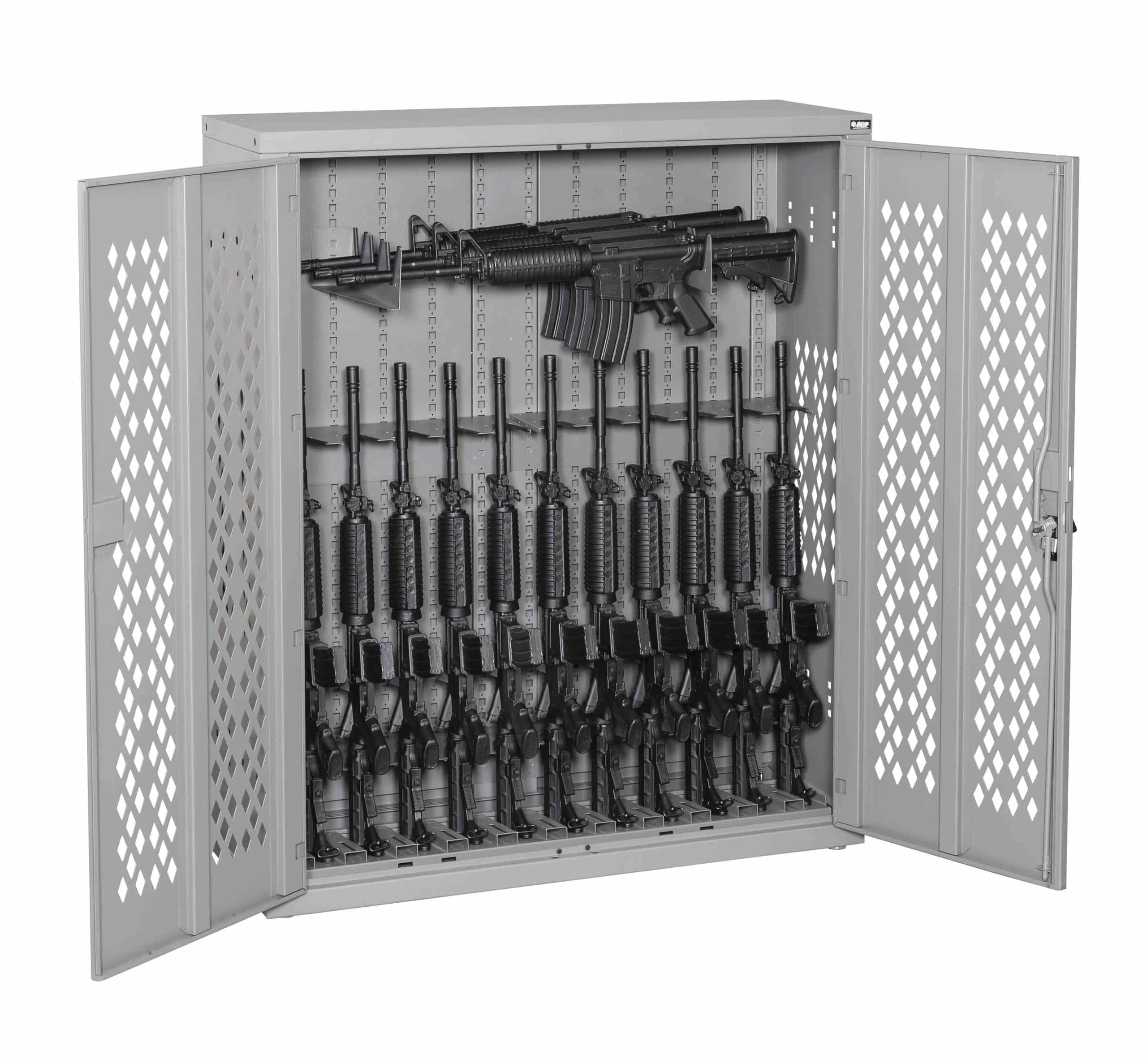 Argos weapon storage cabinets keep weapons and supplies secure and ready at all times. They are completely customizable to make the most of every inch of space, with specially designed components for all types of weapons, ammunition, accessories, and tactical gear. The cabinets provide exceptional security, with either fully hinged doors or retractable bi-fold doors. A range of locking options allow you to control access in the way that works best for your organization. Like all of our storage solutions, the Argos weapon storage cabinet is proudly manufactured in the USA from high-grade steel with a tough-as-nails powder coat finish. Choose from a range of colors to coordinate with your existing facilities. Make sure weapons are always ready and secure with a universal weapon cabinet from Argos by Datum.