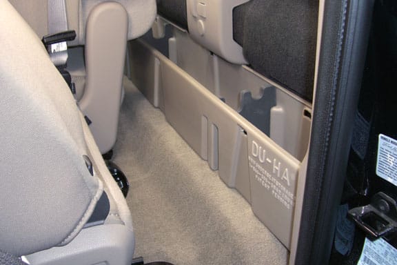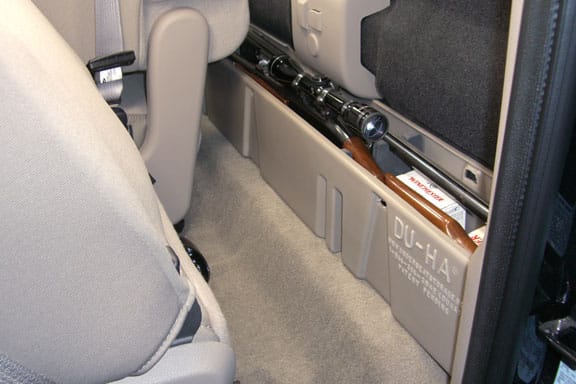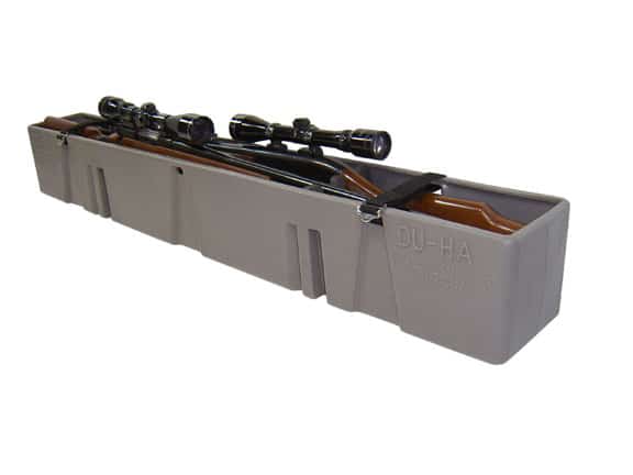 Every DU-HA is custom designed to fit a particular model of truck. The 08-16 Ford F-250 thru F-550 Super Duty Regular Cab model is designed to fit behind your pre-existing back seat. It’s constructed from heavy duty polyethylene and comes with a lifetime warranty. This model also acts as a legal gun case in most states and securely holds up to 2 rifles or shotguns, 1 with scope using the included gun rack.