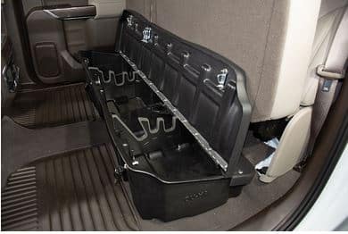 The DU-HA Lockbox is ideal for contractors, sportsmen, and anyone looking for a great way to organize their pickup truck and keep their gear safe and out of reach. Under the back seat of your vehicle, the Lockbox helps you to safely and securely store your gear, arms, power tools, tow ropes, tie-down belts, first aid kit, tackle, bungee straps, helmets, boots, gloves, chains, jumper cables, and much more. You will hold your gear secured and out of sight with its keyed locking mechanism. The Lockbox keyed lock comes with two keys, one for each lock. The Lockbox comes with a two-piece gun rack/organizer to keep your weapons secure. The gun racks and organizers are easily removable, allowing you to store larger pieces if desired. Depending on the model of your vehicle, the Lockbox will hold 2-4 weapons. The Lockbox is easy to mount and blends in seamlessly with the interior of your vehicle, giving it a factory look. The Lockbox is made of heavy-duty polyethylene, has a lifetime warranty, and is Made in the USA.