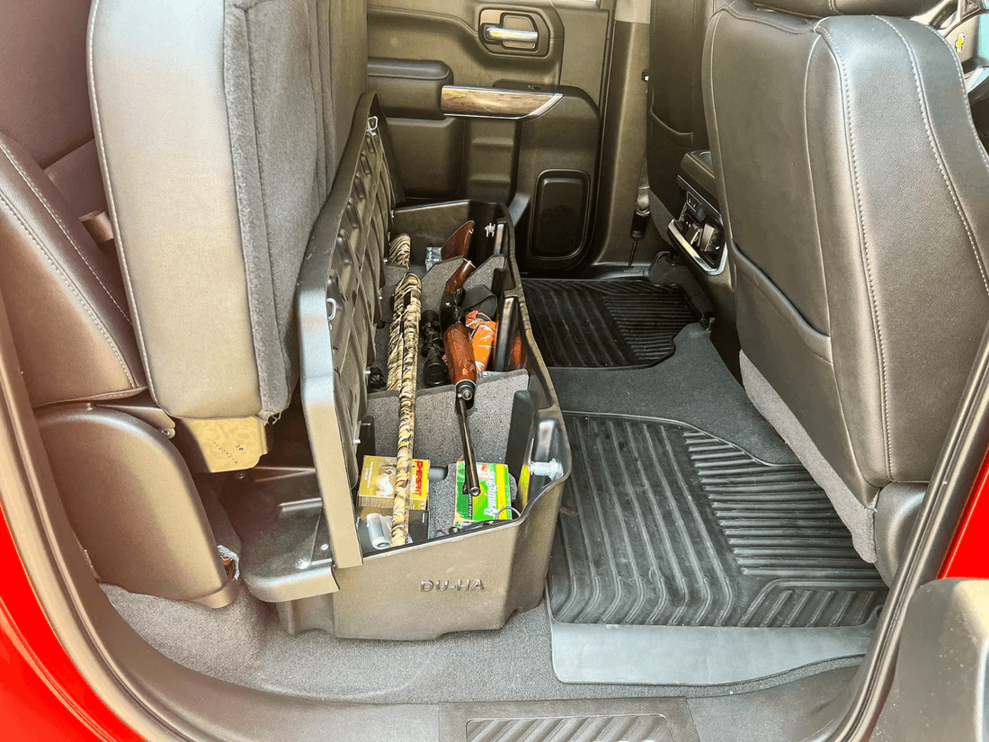 Whether you’re a contractor, sports enthusiast, or anyone who values organized and secure storage, the DÜHA Lockbox is the best under seat truck storage system on the market. This innovative lockable truck storage system maximizes space, enhances organization, and keeps your guns, tools, and gear safe and secure. Proudly roto-molded and Made in the USA, the DÜHA Lockbox comes with a lifetime warranty, reflecting the manufacturer’s confidence in its quality and durability.
