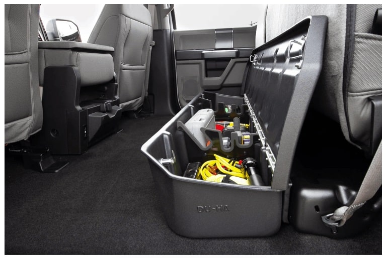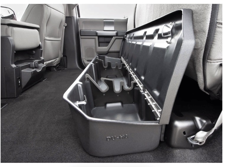 Whether you’re a contractor, sports enthusiast, or anyone who values organized and secure storage, the DÜHA Lockbox is the best under seat truck storage system on the market. This innovative lockable truck storage system maximizes space, enhances organization, and keeps your guns, tools, and gear safe and secure. Proudly roto-molded and Made in the USA, the DÜHA Lockbox comes with a lifetime warranty, reflecting the manufacturer’s confidence in its quality and durability.