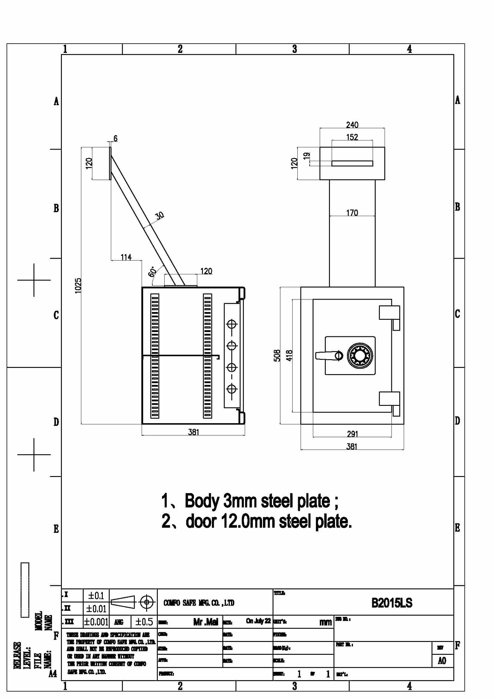 - Locks and relocker are protected by a Drill/Ballistic Resistant hardplate