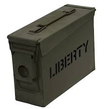 Liberty’s Ammo Canister is the perfect way to store your ammo and other supplies in a secure, water tight container. The Ammo Canisters are in NEW condition. They are constructed out of heavy duty steel, have an air and water-tight rubber gasket, and are built to US Military Specs. OD color, locking latch, and a fold-flat top handle. LIBERTY painted in black on one side.