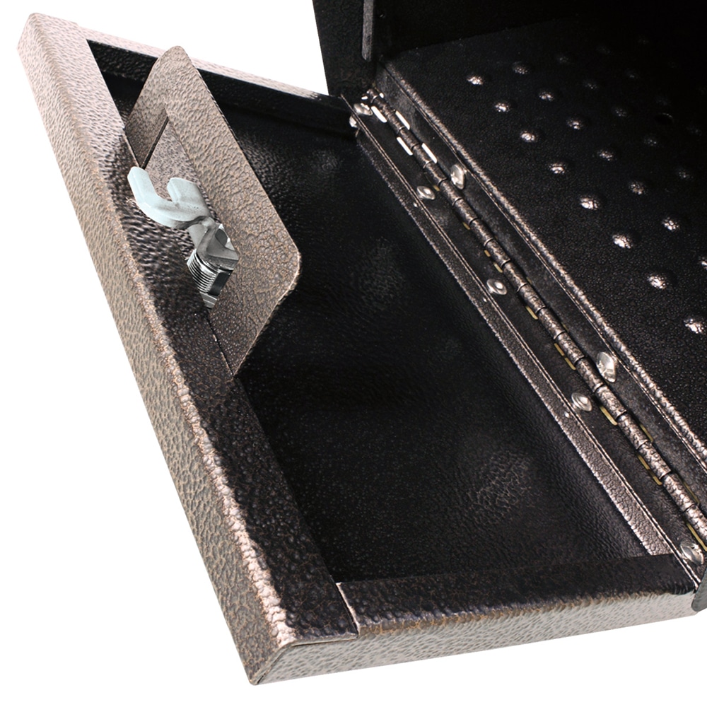 - Patented anti-pry latch locking mechanism featuring a chrome-alloy tempered steel hook cam