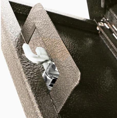 - Patented anti pry latch locking system featuring a chrome alloy tempered steel hook cam and a commercial grade high security wafer lock