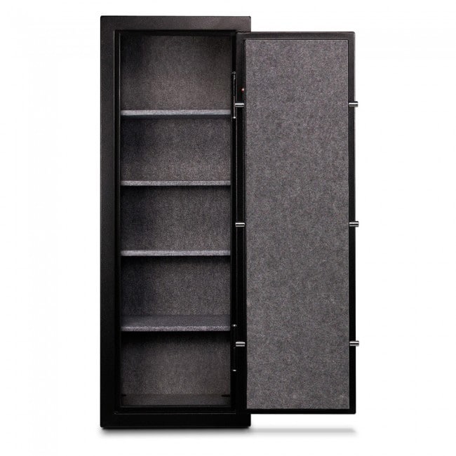 Other security features include an electronic lock that is protected by an additional layer of steel. The massive diameter of the live locking bolts drives into the thick steel body of the safe that ensures the steel door is tightly shut. This protects against forced entry and attempting to break or pry open the safe. The safe is also lined with fire-resistant material that protects your contents in case of a fire emergency. The gun safes can also be used as your typical fire and burglary safe where it can be used to store all other miscellaneous valuables including jewelry, classified records, money, collectibles, photos and more. They provide all the storage and protection you need for both residential and commercial applications giving you all the benefits of one safe – at an affordable price!