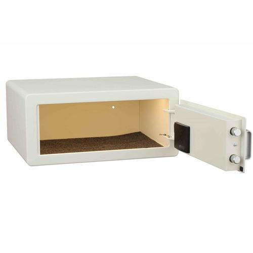 The Protex hotel/personal safe has an easy-to-maintain and-manage system. The safe’s design makes it simple to store laptops, cameras, and other valuables in a secure manner. Secure, easy operations are ensured by the programmable electronic keypad, which also includes a backup key for emergency use (We have concealed they key holes so they are tamper proof). Security is ensured by a carbon steel design with two motorized round locking bolts. You don’t even need to remember the passcode with our biometric finger print safe.