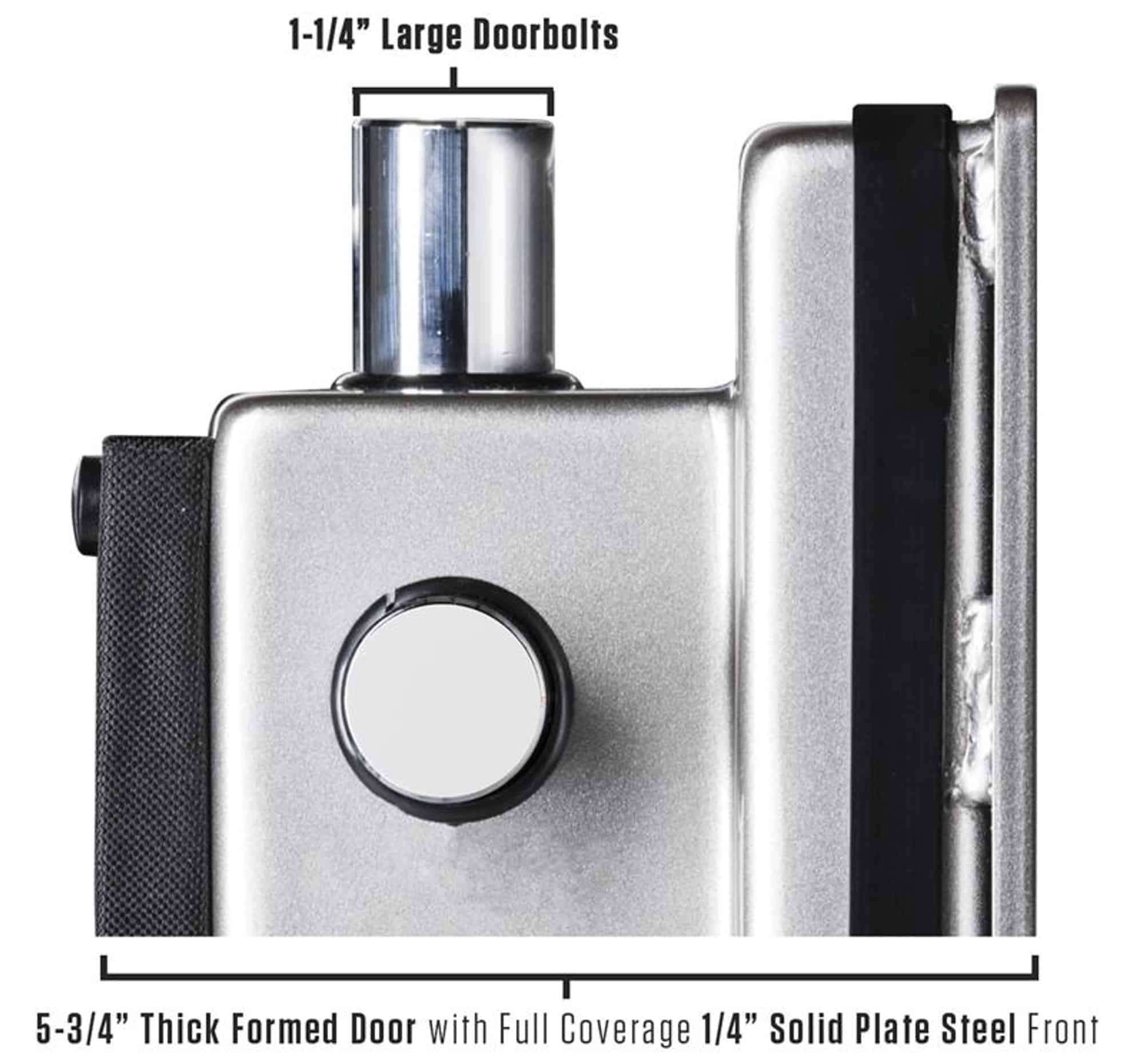 - 5.9″ Thick Formed Composite Door with Full Coverage .25″ Solid Plate Steel Front