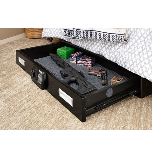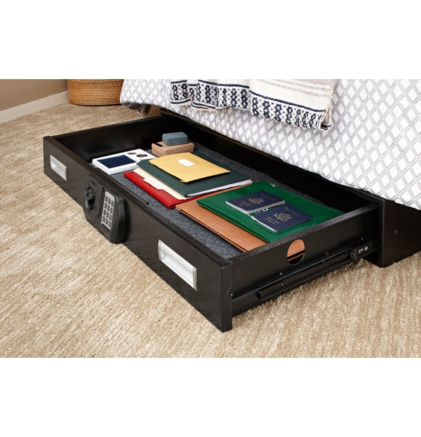 - Slide-out drawer accommodates firearms, jewelry, documents, and more.