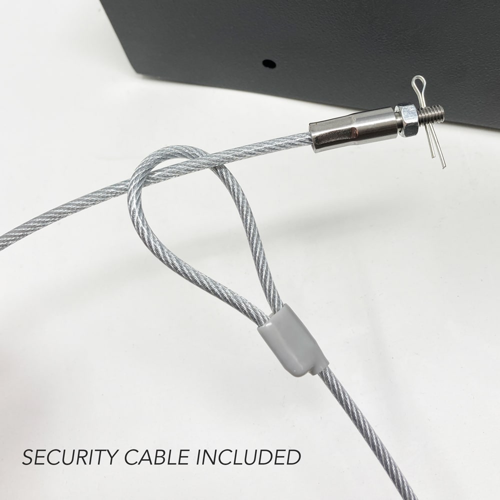Located on the bottom of the safe are 4 bolt down holes and a free security cable is included to ensure a thief is unable to just pick up the safe and open it on their own time.