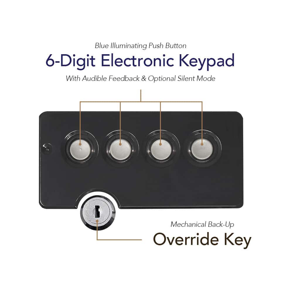 The quick access Electronic Keypad stores your choice of a 6 digit combination