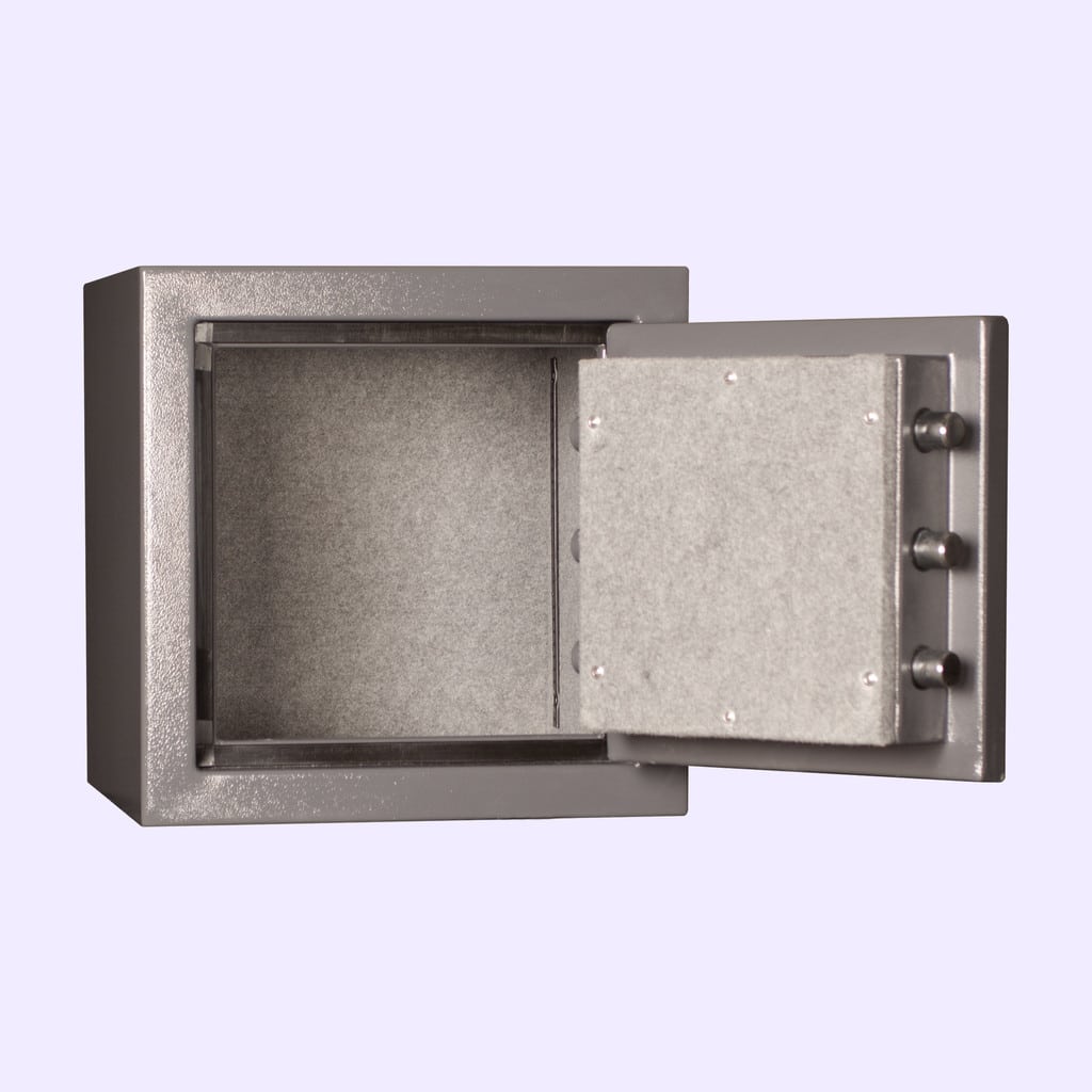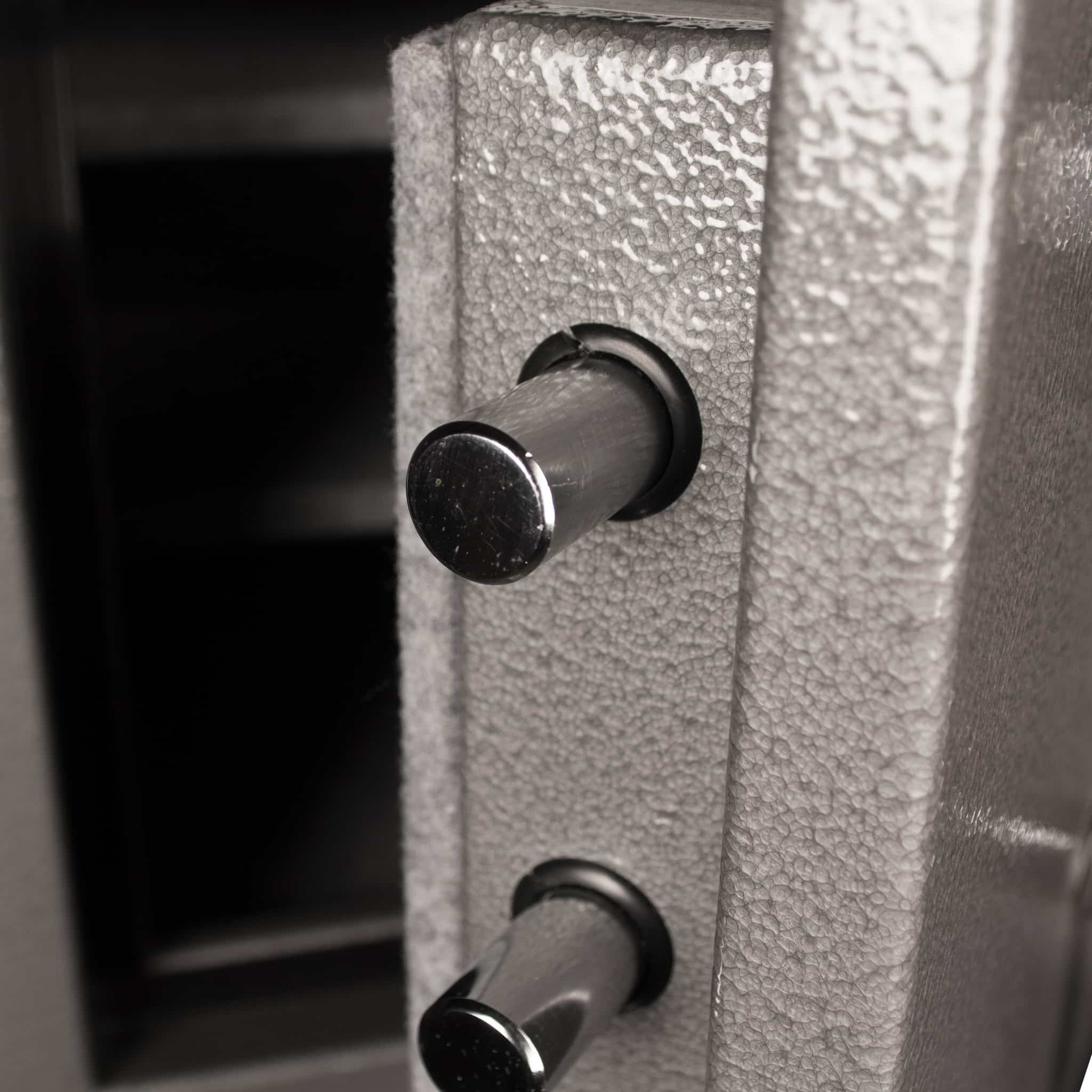 - Attack resistant external hinges that allow the door to open 200 degrees, unlike safes with internal hinges