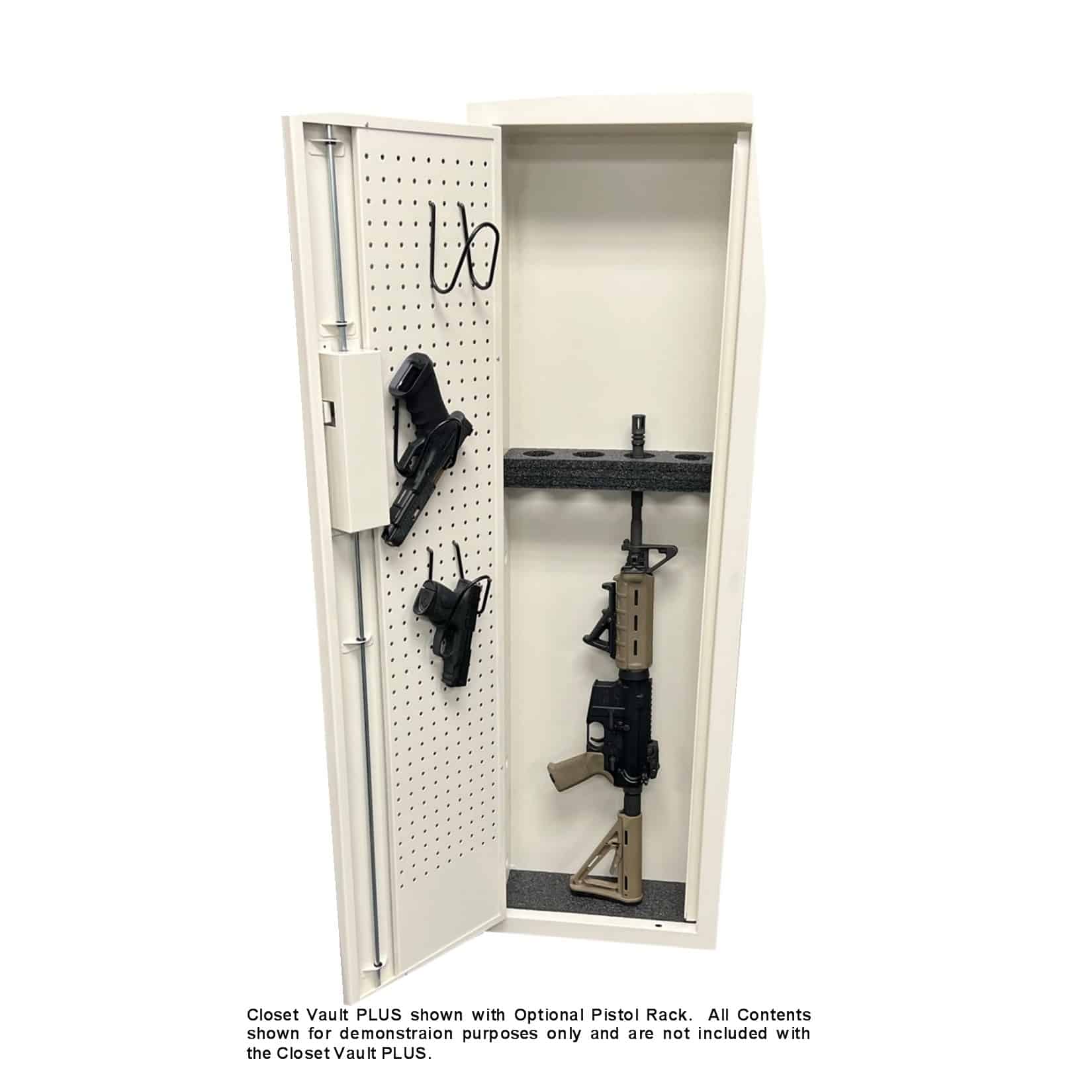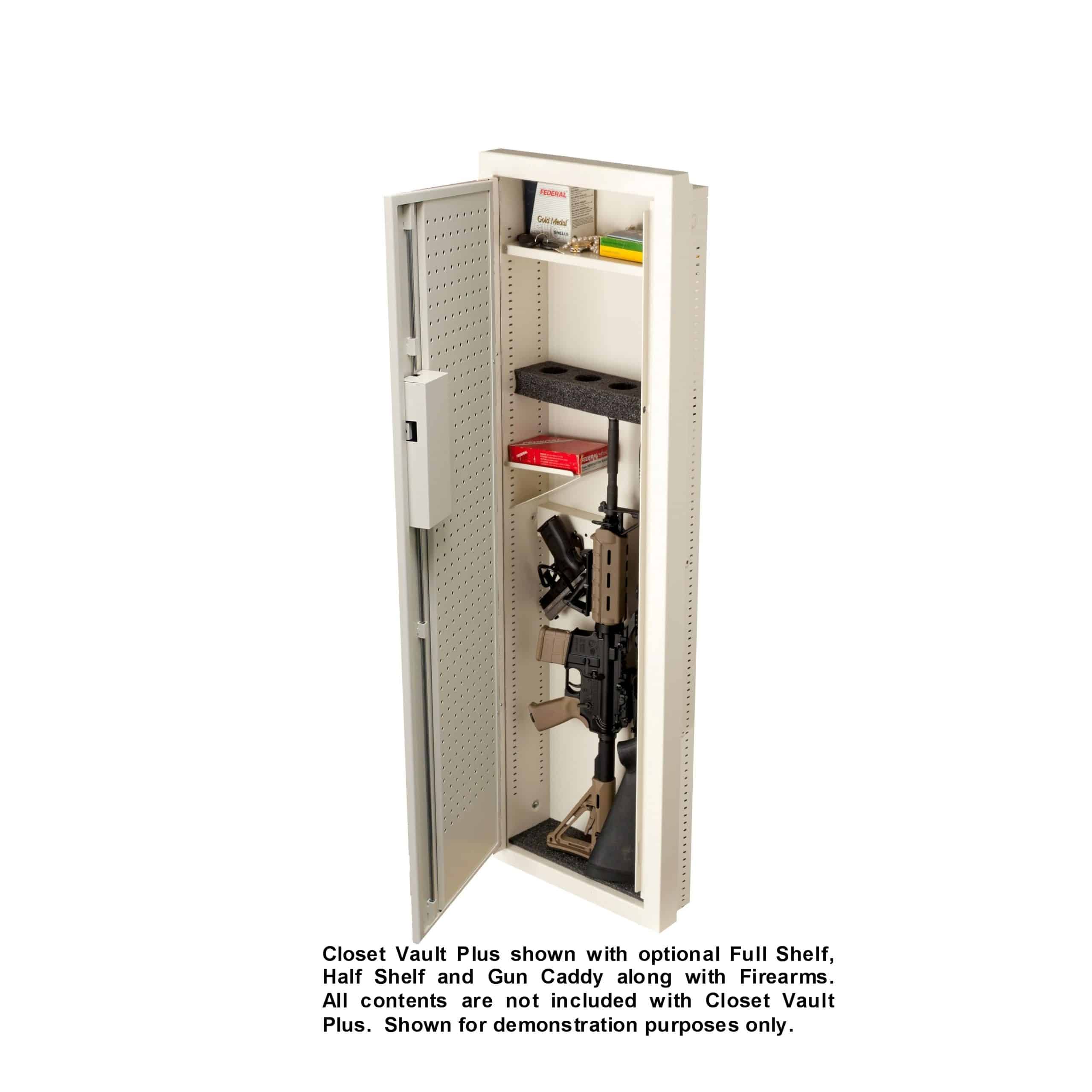 - Optional shelving and pistol hanger accessories are available to customize the Closet Vault PLUS to best meet individual needs.