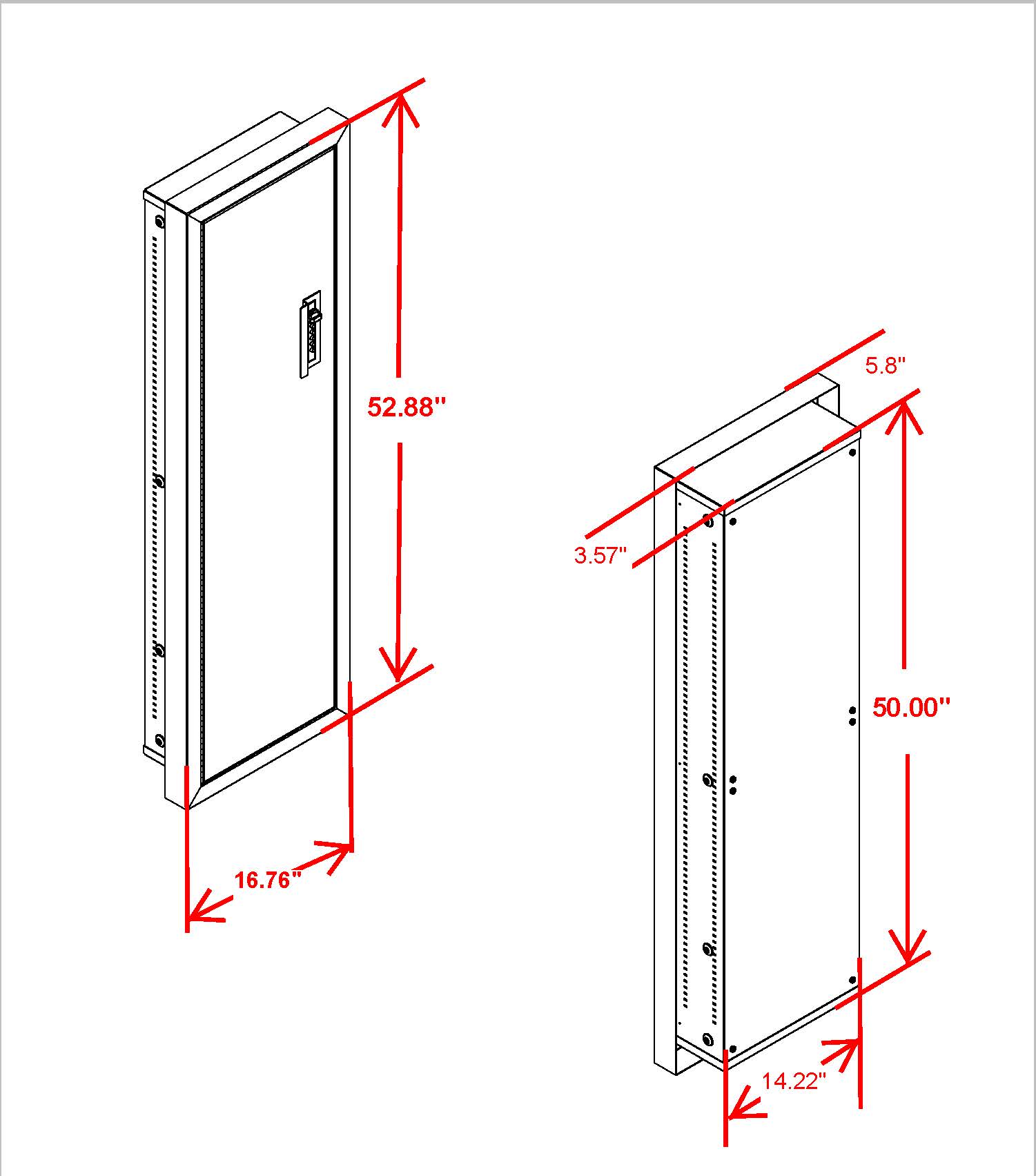 - The door and frame protrude 2” to provide extra internal depth.
